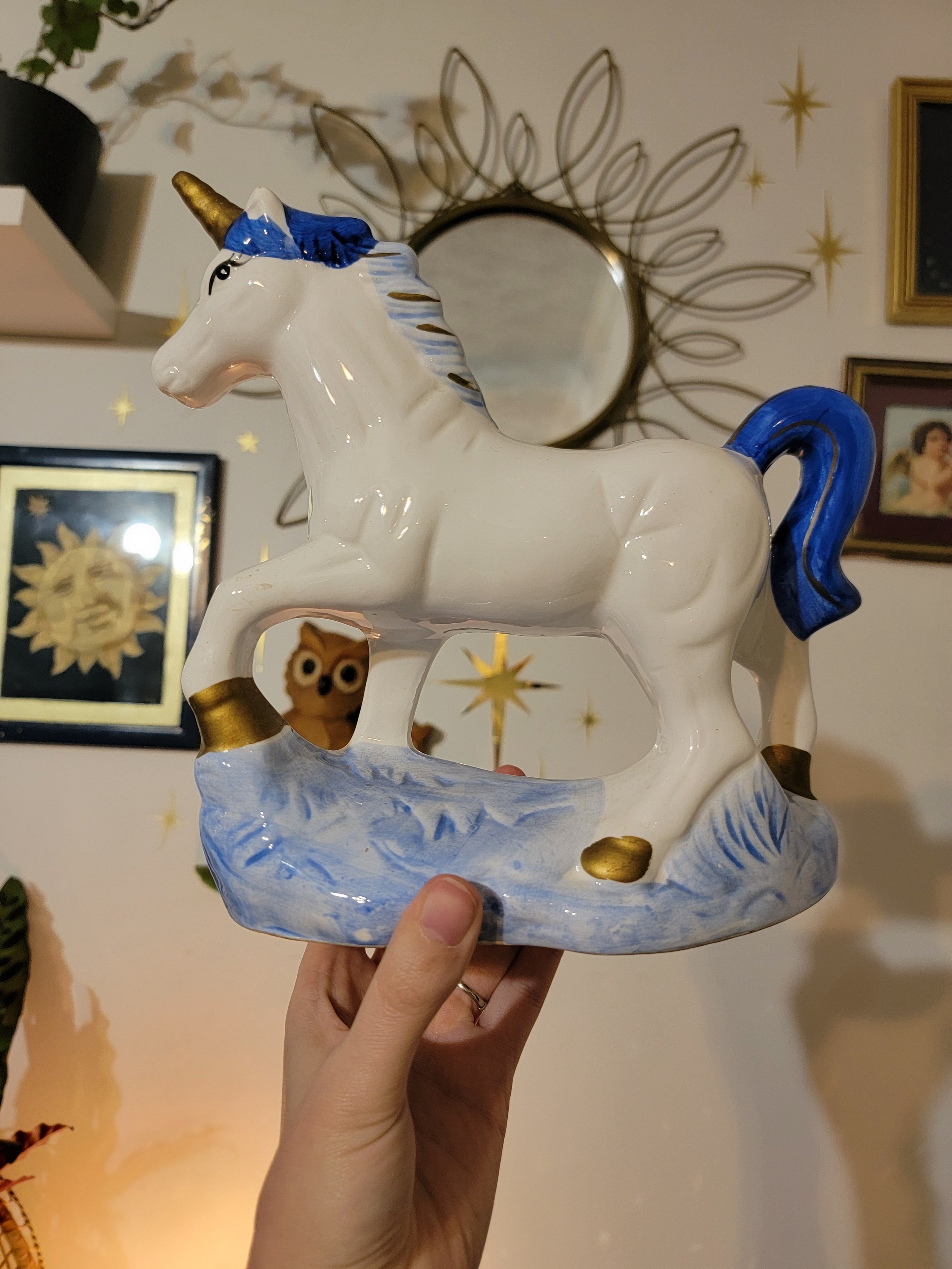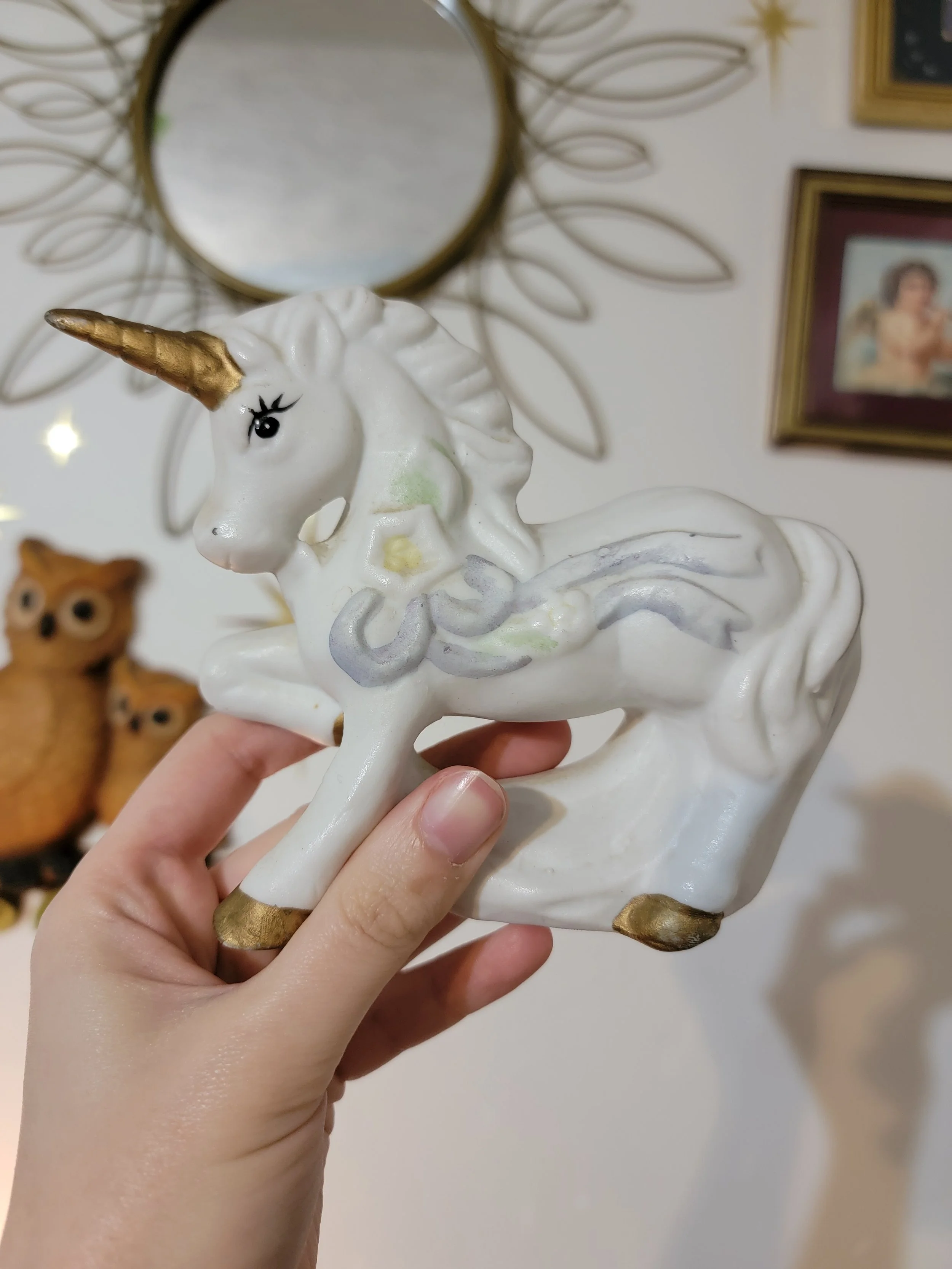 Brass Candle Holder $15.00 Red Cherub Candle Sticks (set of 2) Sale Price: $15.00 Original Price: $20.00 Sale Ceramic Unicorn Box Sale Price: $12.00 Original Price: $25.00 Sale Angel & Cherub Figure Sale Price: $10.00 Original Price: $20.00 Sale Celestial Cherub Figure $25.00 Celestial Cherub Candle Holder $25.00 Unicorn Plug in Lamp (Does work!) Sale Price: $15.00 Original Price: $30.00 Sale Vintage Dolphin Toothrush Holder $15.00 Large Cross Stitch Art $20.00 MCM Flower Wall Deco (set of 3) $25.00 Angel & Cherub Clock Sale Price: $15.00 Original Price: $30.00 Sale Large Celestial Scarf $15.00 Wood Kitchen Wall Art $10.00 Mushroom Salt & Pepper Shakers $20.00 Celestial Pillow Case $20.00 Vintage Cutesy Wall Art $12.00 Homco MCM Butterfly (set of 3) $25.00 MCM Wooden Wall Butterfly $12.00 Celestial Bed Sheet (Twin) $30.00 Large Ceramic Unicorns $30.00 Large MCM 3D Wall Art $25.00 Ceramic Unicorn $15.00 Glass Opaque Cherub Candle Holder $10.00 Pair of Ceramic Unicorns $20.00 Smiley Face Bank $40.00 RARE Paper Cherub Trinket Box $40.00 let me know what you're looking forLet me know specifically what treasures you’re searching for and I'll do my best curate them for you! Contact me